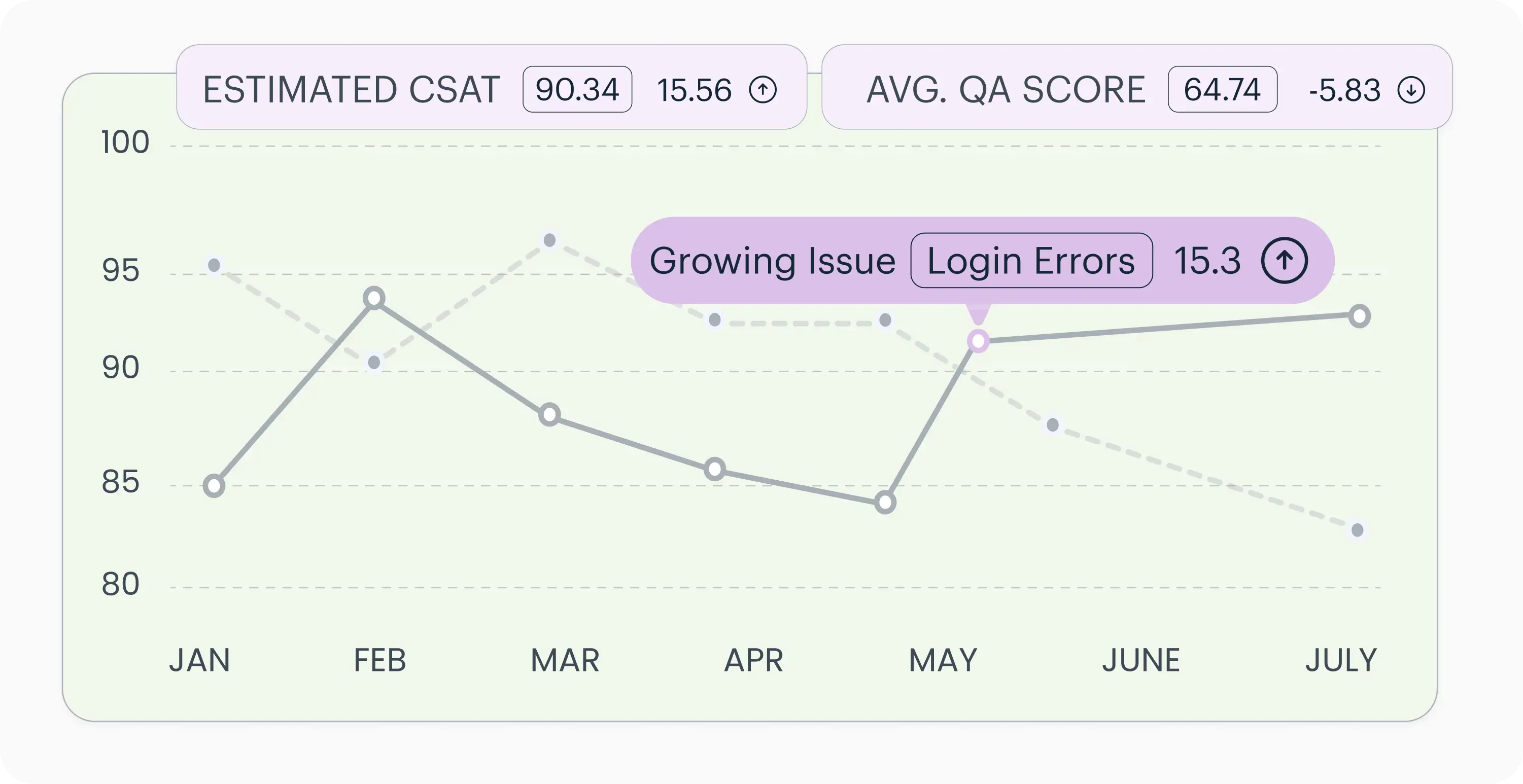 Know when conversation themes move outside normal ranges, the moment it happens. Mobile login issues spiking in onboarding calls? Your team gets alerted Tuesday morning, not in next month's report. Fix problems while they're small.