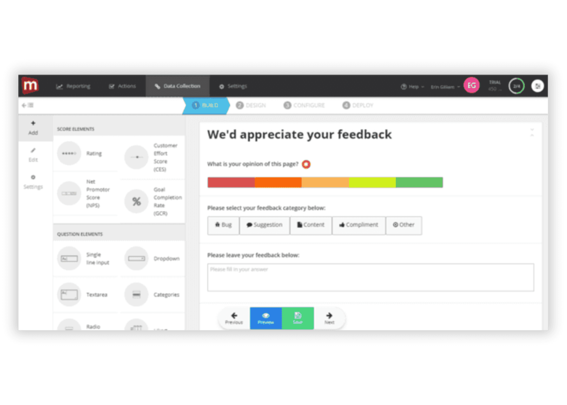 Easy-to-use survey builder with a large template library