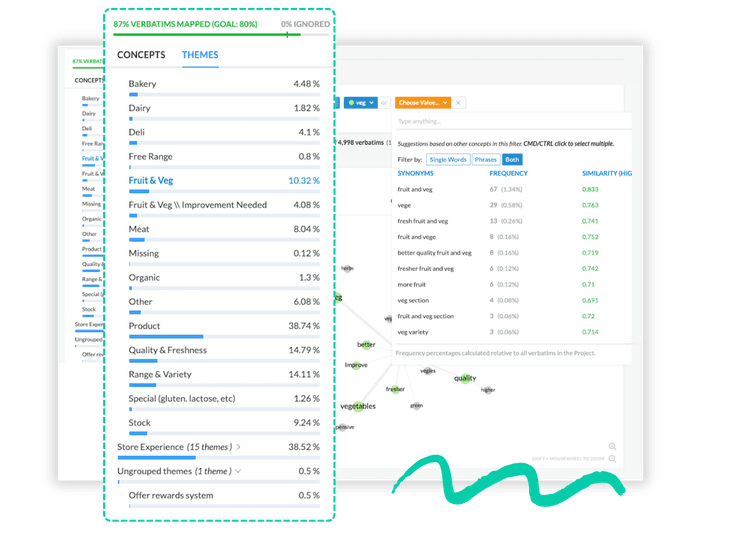 One of the most time-consuming tasks for any insights team is manually coding and categorizing customer feedback. Kapiche’s AI Auto-Theming feature revolutionizes this process. By automatically surfacing themes across large datasets, our AI eliminates the need for labor-intensive manual coding, freeing your team to focus on higher-value analysis.