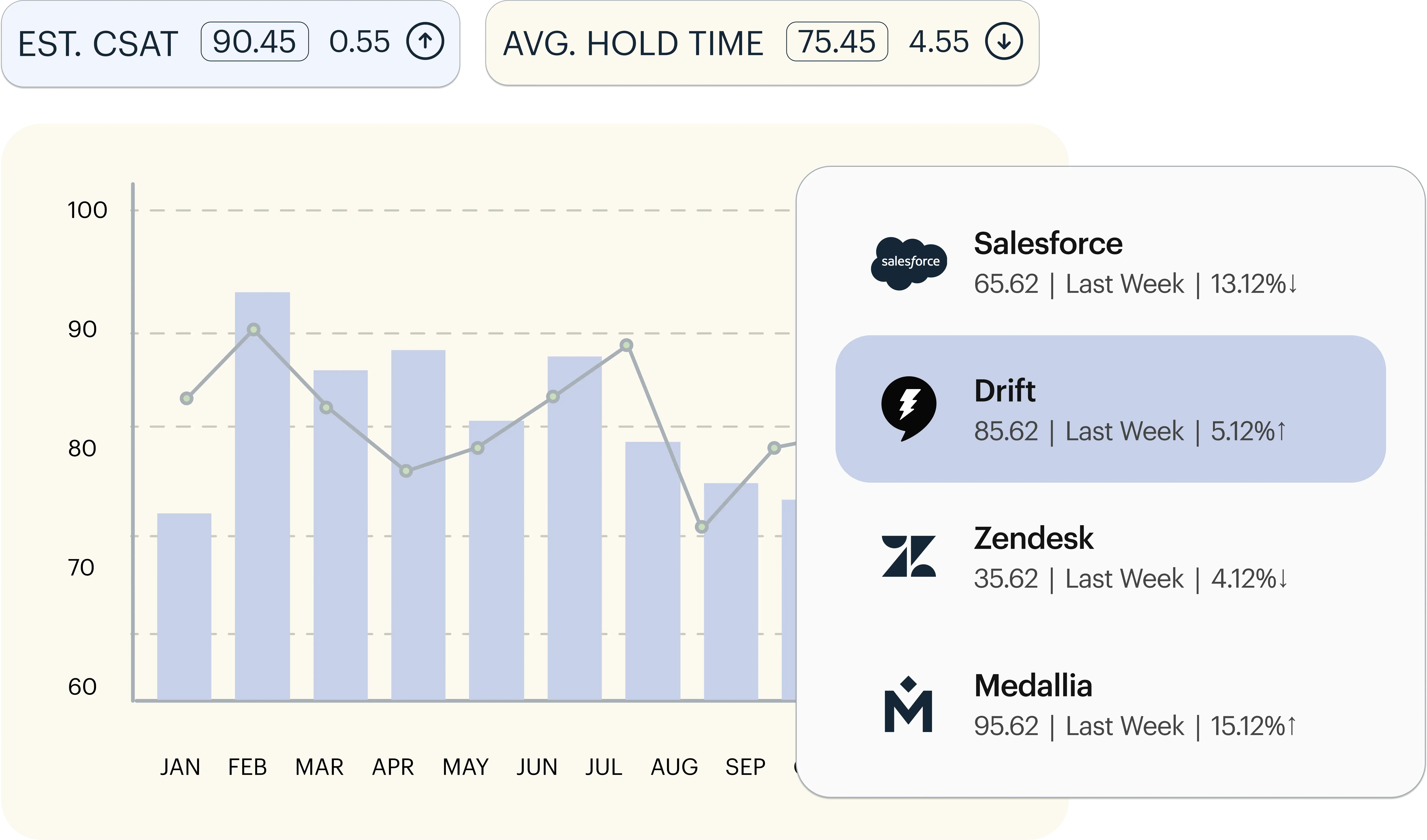 Integrate in under 24 hours. Start with surveys. Add support calls, chat, and email when you're ready. No rip-and-replace. No workflow disruption. We connect to what you already have.
